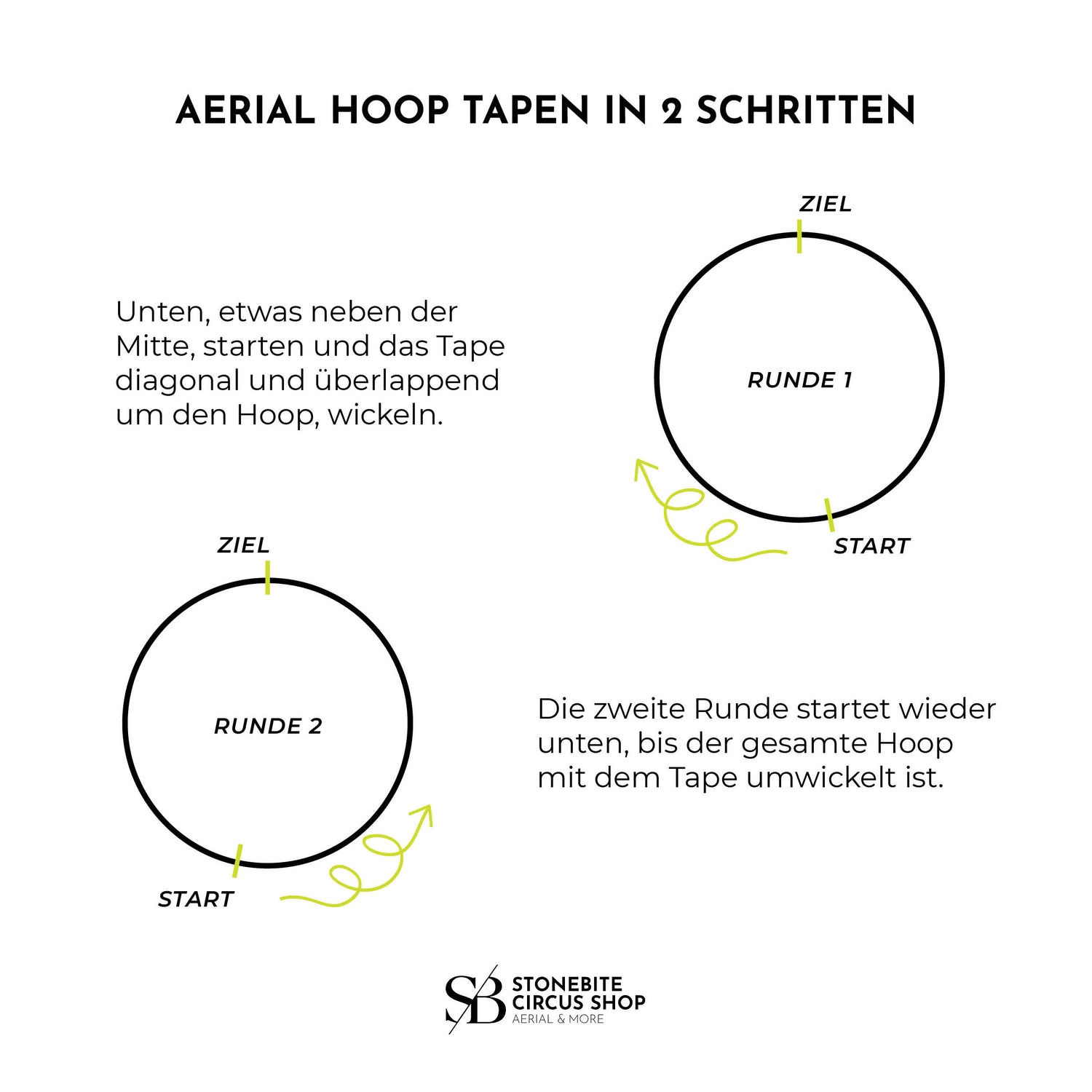 Du kannst deinen Aerial Hoop mit oder ohne Hoop Tape verwenden. Jeder unserer Ringe ist aus Stahl gefertigt und schwarz pulverbeschichtet , um die Oberfläche griffiger zu machen. Er kann bereits...